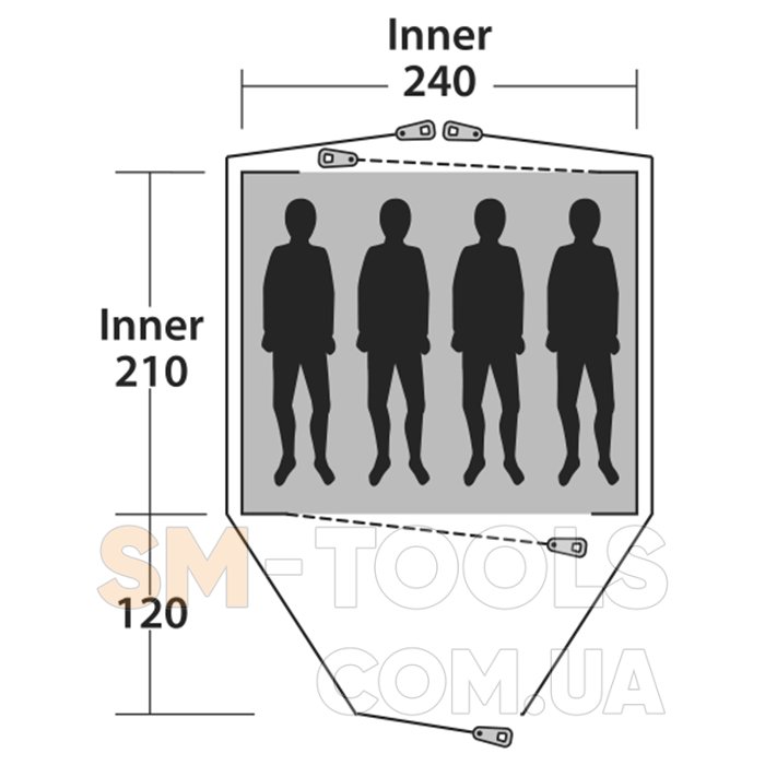 Внутренняя палатка (Д х Ш х В): 210 х 240 х 125 см