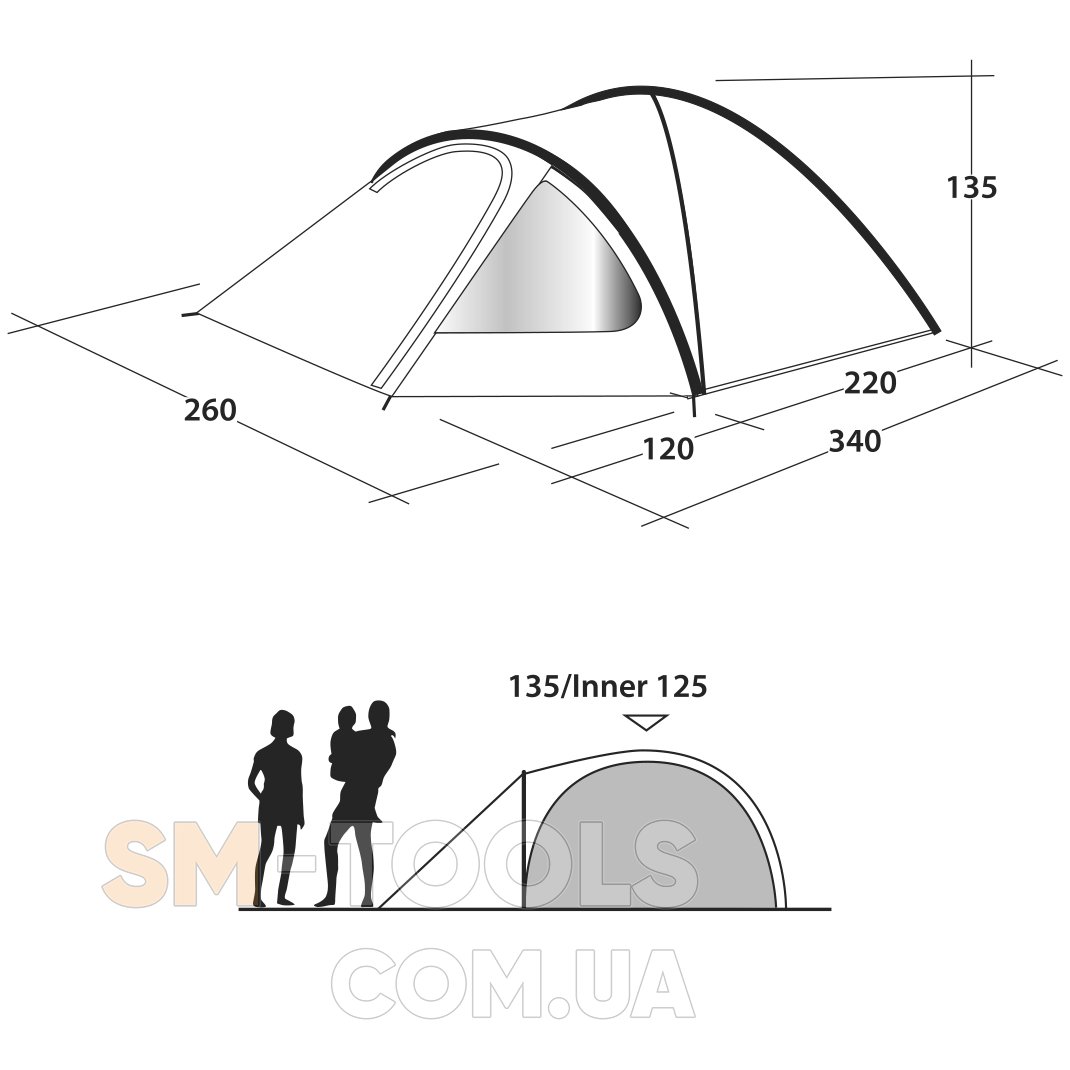 Внешний тент (Д х Ш х В): 340 х 260 х 135 см