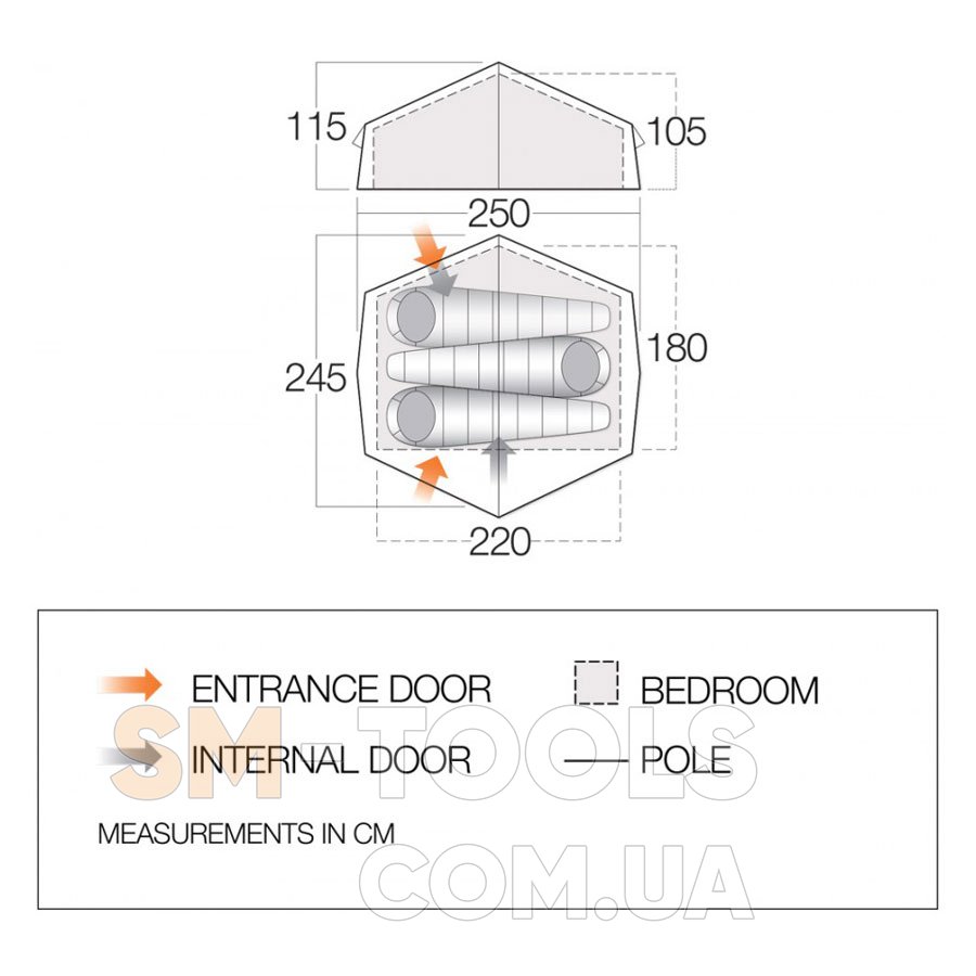 Внешняя палатка (ДхШхВ), мм: 2500 x 2450 x 1150
