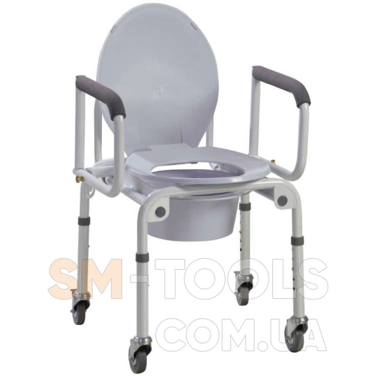Сталевий стілець-туалет на колесах з відкидними підлокітниками OSD-2107D