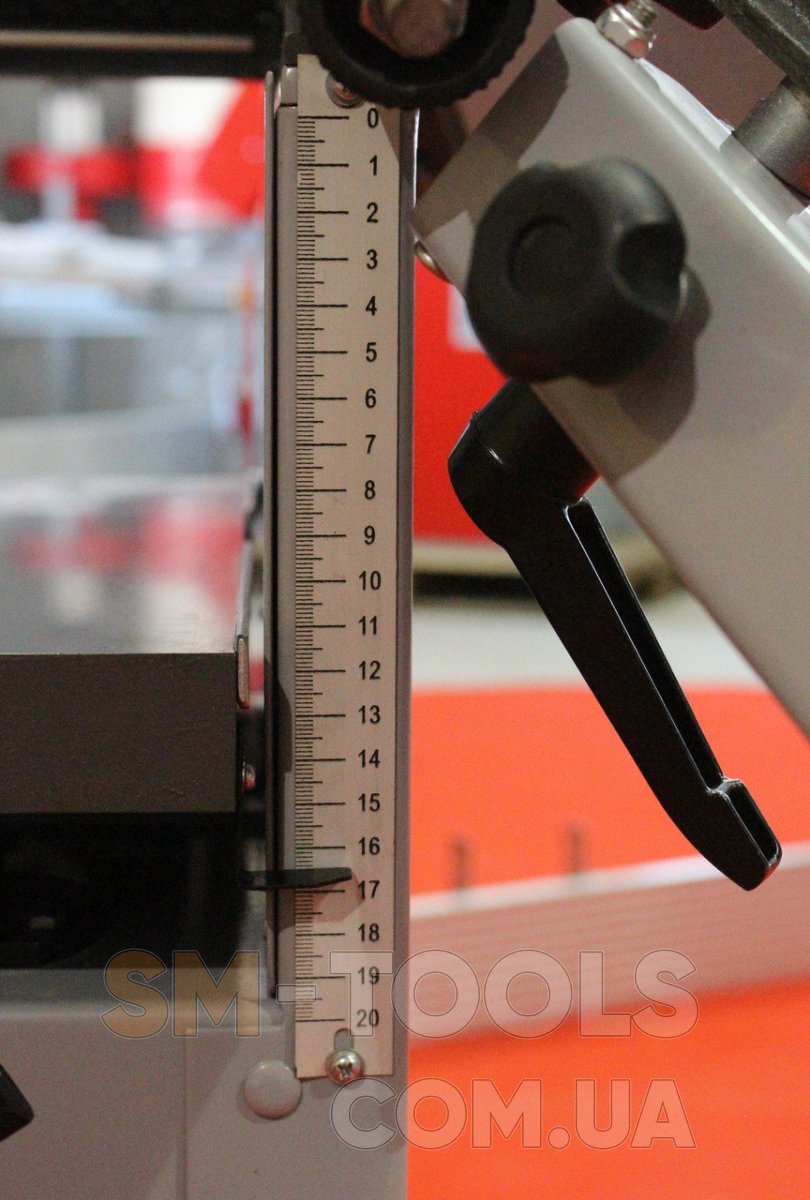 Перпендикулярна лінійка виготовлена з анодованого алюмінію і закріплена на чавунній основі, що сприяє точному регулюванню під улюбленим кутом (90-45 градусів).