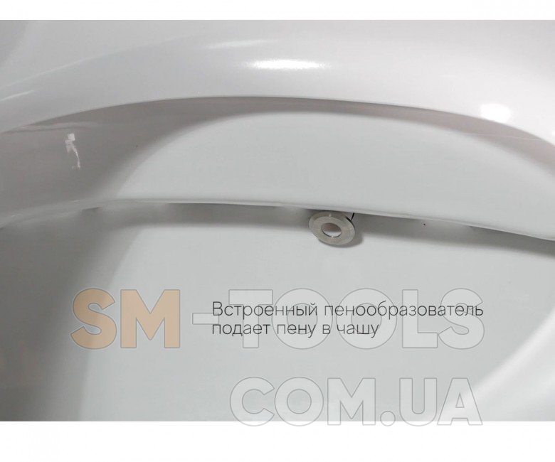 Механизм пенообразователь подает в чашу плотную пену, что позволяет уйти от использования ёршика, туалетного чистящего средства а также освежителя воздуха. Это новая, усовершенствованная система снижает уровень разбрызгивания во время использования. Благодаря плотной пене которая образовывается сверху воды в чаше унитаза капли воды не попадают на тело человека. Запускается механизм легким прикосновением к сенсорной кнопке вмонтированной в крышку бачка. Работает механизм от встроенного аккумулятора, который заряжается с помощью обыкновенного PowerBank, подключением к кнопке, без извлечения механизма и держит зарядку так долго, что совсем не обременяет пользователей. Резервуар устройства наполняется на две трети жидким мылом (рекомендуется мыло ТМ ASIGNATURA) и погружается обратно в бачек. Оставшееся пространство резервуара наполнится водой из бачка. В процессе работы происходит постепенное смешивание средства с водой. Такая система обеспечивает бесперебойную подачу воды в механизм и подготовку рабочей смеси в огромном количестве, которое невозможно подготовить заранее и разместить внутри бачка. Как следствие, средства хватает очень на долго.
