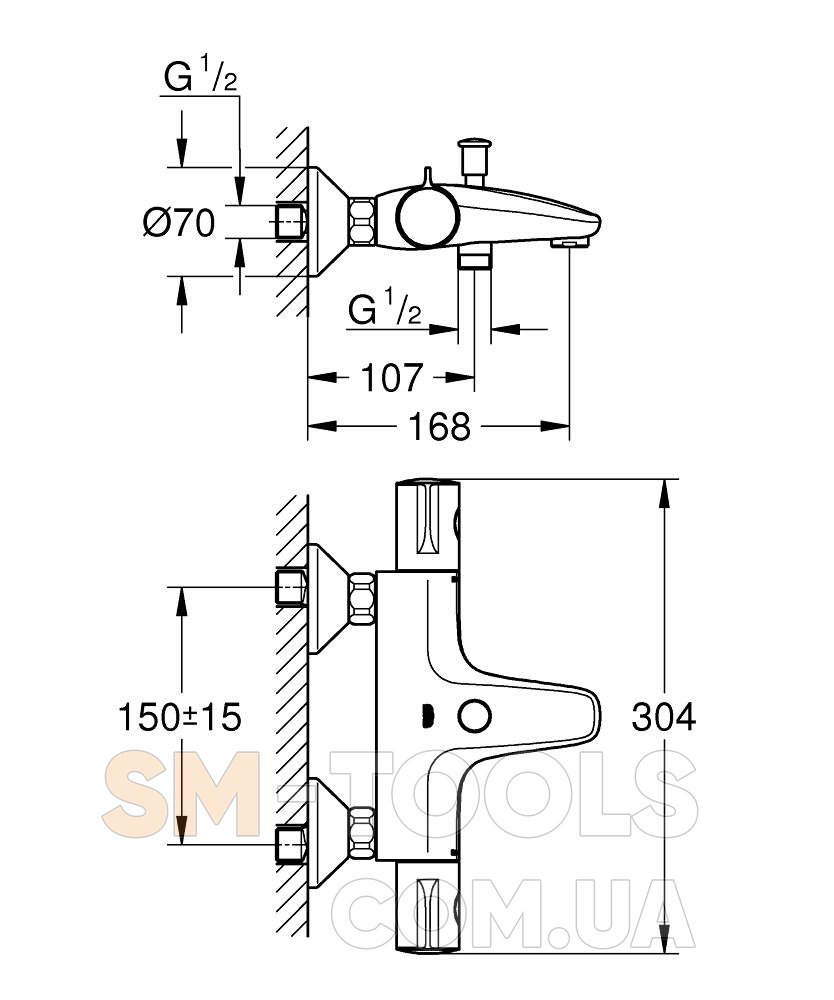 Змішувач для ванни з термостатом Grohe Grohtherm 800 з душовою лійкою