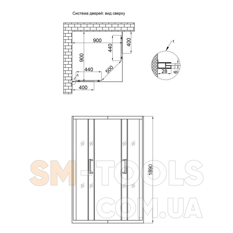 Высота стекол, мм: 1890