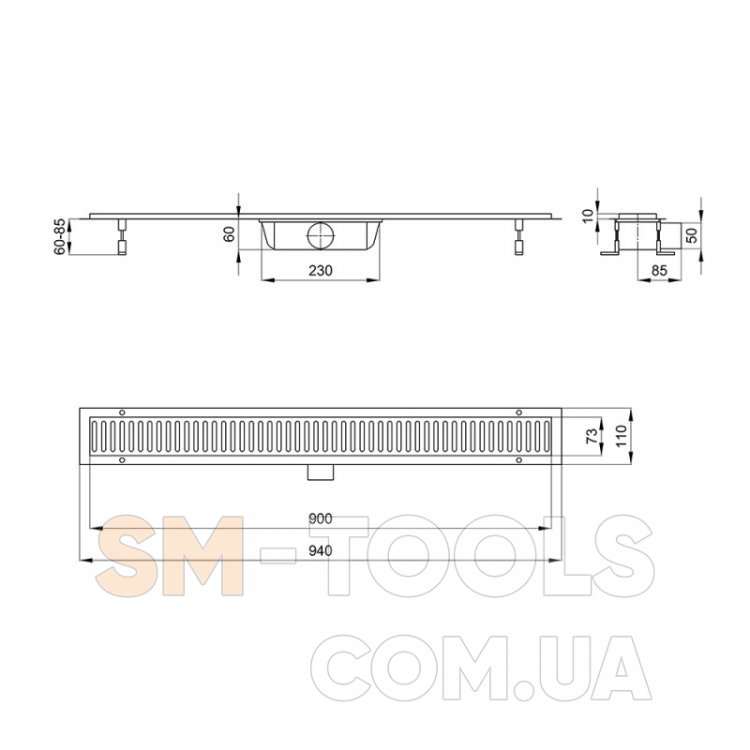 Трап лінійний Q-tap Dry FA304-900 з нержавіючої гратами 900х73 (QTDRYFA304900)