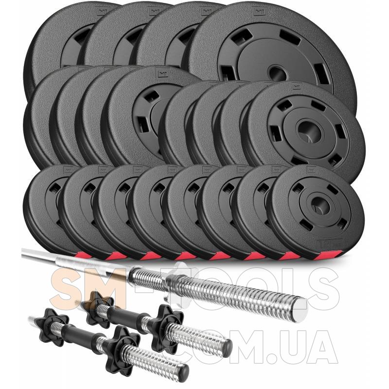 Набор Premium 90 кг предназначен для силовых тренировок и занятий бодибилдингом. Набор состоит из битумных дисков покрытых прочным пластиком, один прямой гриф и два пластиковых грифа для гантелей. Тренировки с данным набором проходят комфортно и безопасно.