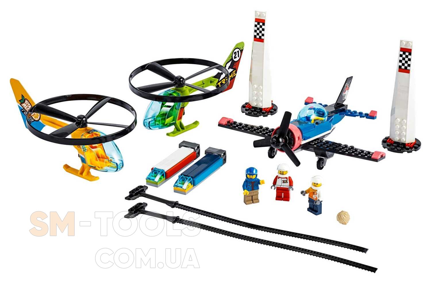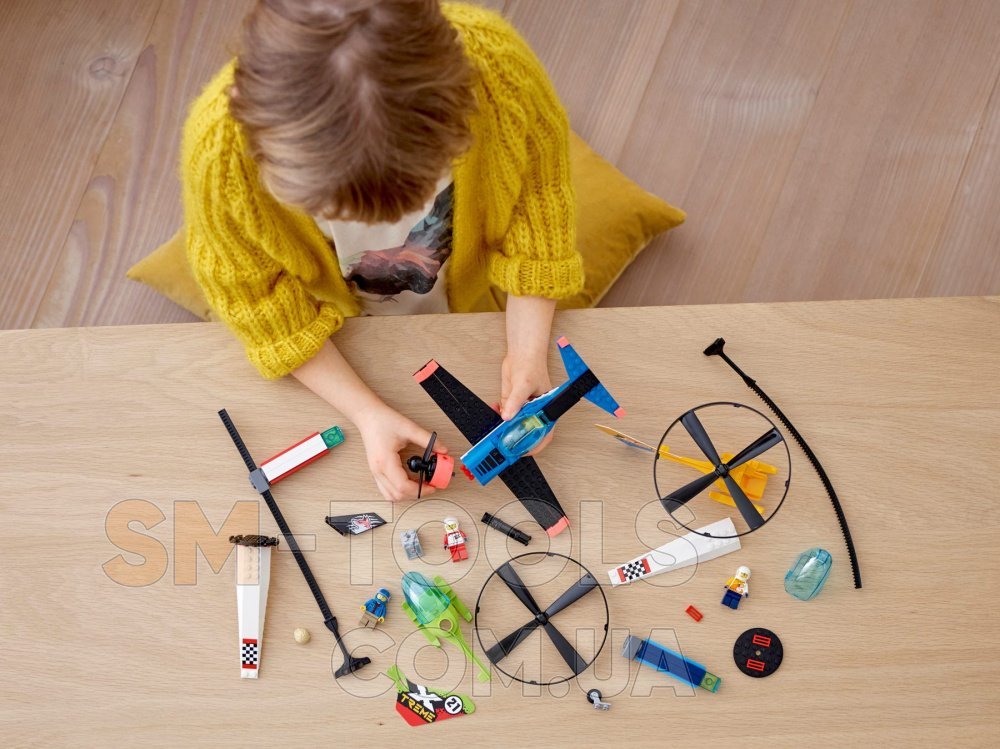 Пробудите детское воображение с помощью набора «Воздушная гонка» LEGO City, включающего в себя два игрушечных вертолёта с устройствами запуска, три минифигурки, в том числе фигурку пилота Риверы, персонажа мультсериала «Лего Сити: приключения», и многое другое.Что в коробке? В набор «Воздушная гонка» LEGO City входят два вертолёта с устройствами запуска, пилотажный самолёт, две ориентирные вышки и три минифигурки: пилота Риверы, персонажа мультсериала «Лего Сити: приключения», и пилотовЭкстрима и Витараша LEGO City.Дети смогут запускать вертолёты в воздух с помощью специальных пусковых механизмов. В открывающиеся кабины пилотажного самолёта и вертолётов можно посадить одну из трёх минифигурок пилотов, входящих в этот набор.Набор «Воздушная гонка» LEGO City (60260) станет прекрасным подарком на Новый год, день рождения или другой праздник для детей в возрасте от 5 лет, а также для мальчиков и девочек, любящих игрушечные транспортные средства. Требуются только базовые навыки конструирования.Размеры пилотажного самолёта — чуть более 8 см в высоту, 20 см в длину и 20 см в ширину, а размеры вертолёта — чуть более 7 см в высоту, 18 см в длину и 12 см в ширину.Для игр с этим конструктором для воздушных гонок не нужны батарейки, необходимо лишь детское воображение. Нужна дополнительная помощь по запуску вертолётов? Сканируйте этот QR-код в инструкциях по сборке, чтобы посмотреть видеоруководство.Для этого набора для воздушных гонок предусмотрены как печатные инструкции по сборке, так и цифровые инструкции Instructions PLUS, которые помогут начинающим строителям стать настоящими мастерами конструирования. Они доступны в бесплатном приложении LEGO Building Instructions для смарт-устройств. В наборах серии «Аэропорт» LEGO City вы увидите реалистичные и полные всевозможных деталей и функций здания, крутые транспортные средства и забавных персонажей, вдохновляющих на творческие игры.Все конструкторы серии «Аэропорт» LEGO City соответствуют самым строгим отраслевым стандартам и критериям качества, поэтому они совершенно безопасны и совместимы друг с другом, а все кубики и детали LEGO легко соединяются и разъединяются.Специалисты LEGO Group испытывают все кубики и детали LEGO на удар, нагрев, скручивание, изгиб и растяжение, чтобы убедиться в соответствии каждого набора самым строгим международным стандартам безопасности и качества.