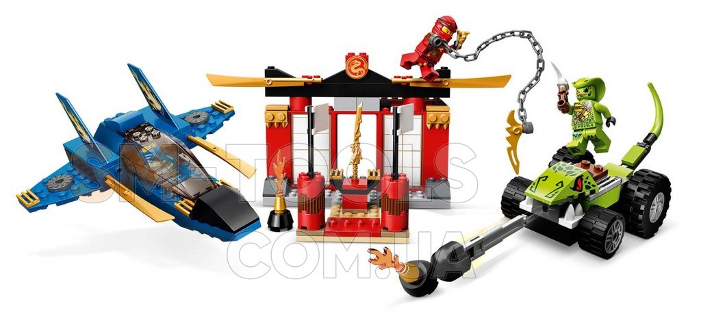 Вставай на сторону Кая и Джея в этой невероятной битве против злобной и внушающей страх Лаши, разведчицы змеиного племени Веномари. Взмывай в небеса на этом супербыстром реактивном самолёте, чтобы догнать Лашу, едущую внизу на своём змеемобиле. Берегись его шутеров! Смогут ли отважные ниндзя одержать победу в этом захватывающем сражении и призвать ужасную Лашу к порядку?
