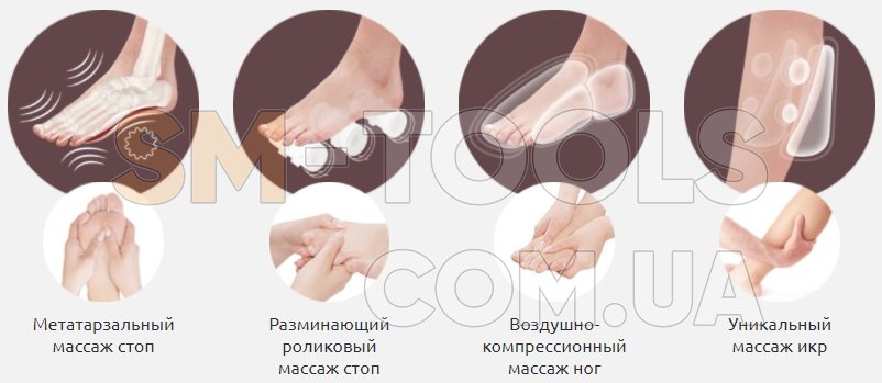 Верхня частина масажера рухається у суворій послідовності, що, у поєднанні з метатарзальним масажем, робить процедуру корисною та приємною.