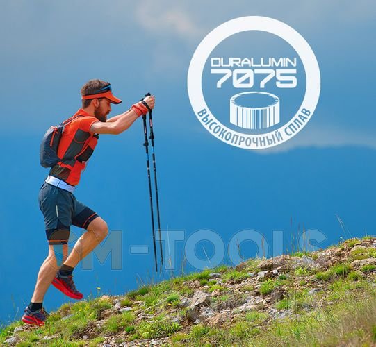 Надежность конструкции обеспечивается применением высокопрочного сплава на основе алюминия и меди (дюралюминий), который намного тверже каждого из них в отдельности. Вес одной палки - 320 грамм. Вы можете использовать палки для ходьбы по городу, брать в поездку или путешествие. Победитовый наконечник обладает высоким коэффициентом истираемости, выдерживает динамические нагрузки до 170 кг.