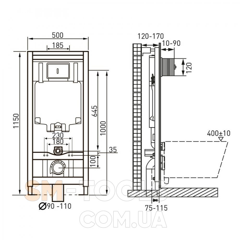 - Глубокая сервисная шахта - 10-90 мм от поверхности стены