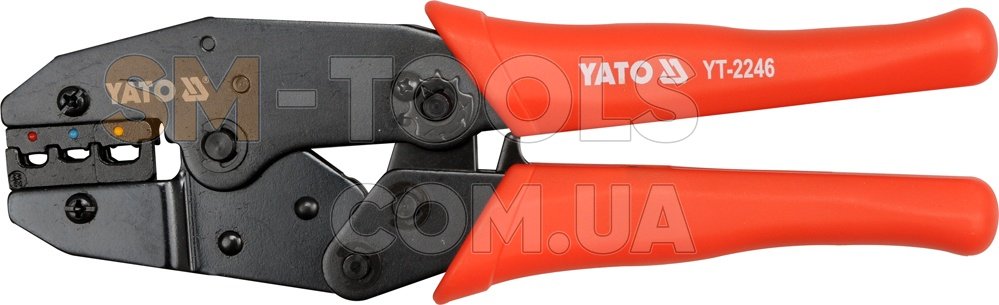Пассатижи для обжима и зачистки проводов YATO YT-2246 L=220 мм - Многофункциональные пассатижи для снятия изоляции с храповым механизмом для обжима разъема на проводах. Рабочая часть изготовлена из высококачественной инструментальной стали и закалены приблизительно до 44-47HRC. Удобные рукоятки изготовлены из не скользящего пластика. Пассатижи предназначены для: