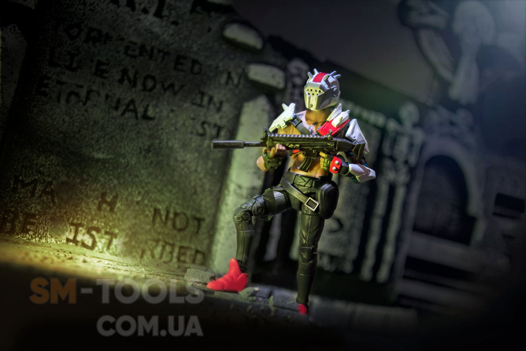 Стильний шолом з шипами .. Це ще одна мода, якої ми варті? Для X-Lord це звичайний атрибут. Але виникає питання: отвори на шоломі потрібні для дихання або для можливості що-небудь бачити? Артикульовані фігурки Legendary Series точно відображають образи віртуальних героїв. Деталі виконання (скіни), належності образів, зброю або інструменти збору ресурсів ідентичні віртуальним. Висота героя 15 см, ідеально для залучення поза «Фортнайт» з іншим приладдям як для будівництва, так і для використання планерів, автомобілів і багато іншого. Герой: X-Lord - Scavenger, ідентична копія персонажа гри. Має 40 точок артикуляції, завдяки чому здатний відтворити саму епічну позу або танок.