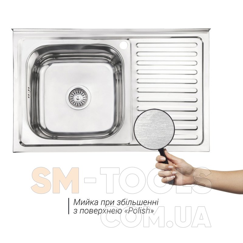Кухонна мийка Lidz 5080-L Polish 0,8 мм (LIDZ5080LPOL08)