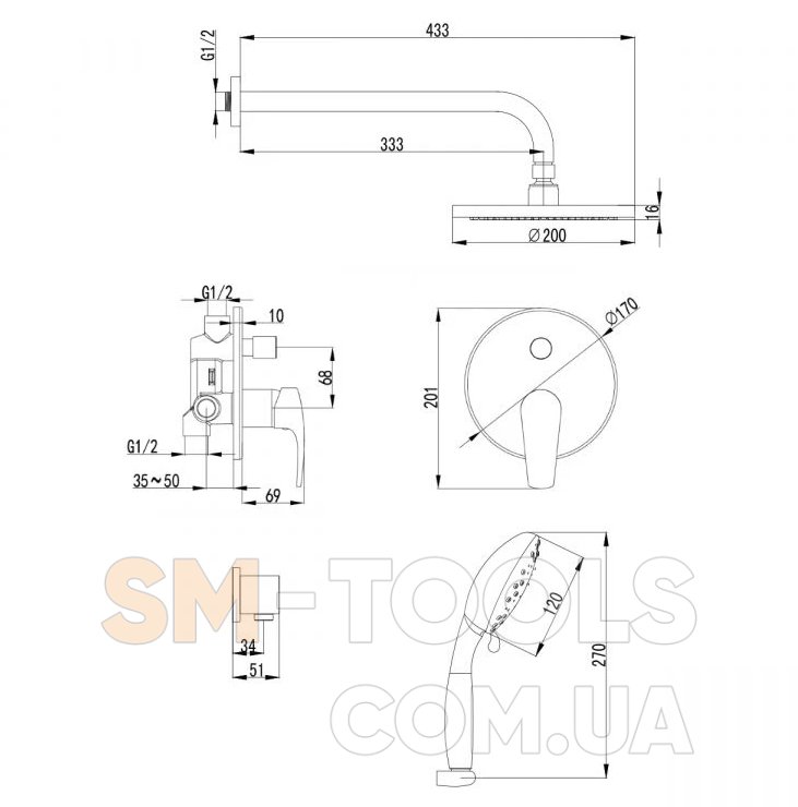 Характеристики Комплект EGER TISZA (AMUR) душова кабіна 90*90*185см (599-021-A/1) + JESENIK змішувач прихованого монтажу для душу (VR-15140):