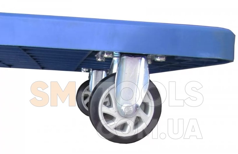 Вантажний візок Vulkan PSL300 - складське обладнання для транспортування вантажів загальною вагою до 300 кг. Представлена модель має пластикову платформу, а також обладнана 2 поворотними (задні) і 2 стаціонарними колесами з поліуретановим покриттям.