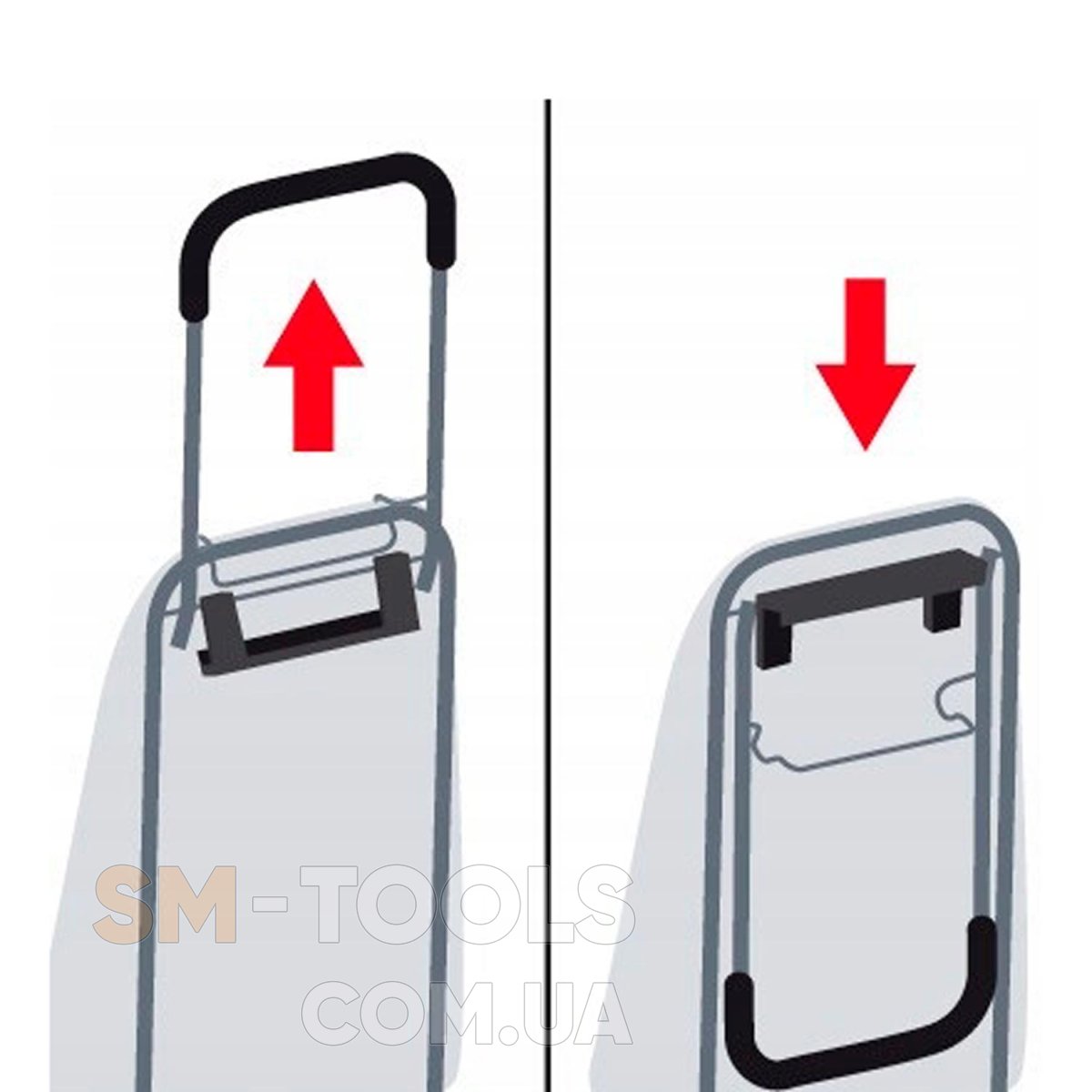 - Сумку-тележку легко размещать в автомобиле и поднимать в случае необходимости благодаря складной ручке.