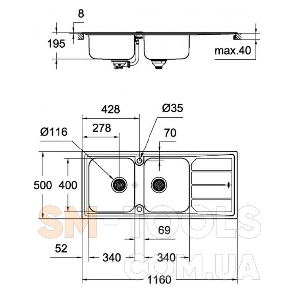 Опис Кухонна мийка Grohe Sink K500 31588SD0 зі змішувачем GROHE BauLoop 31368000:
