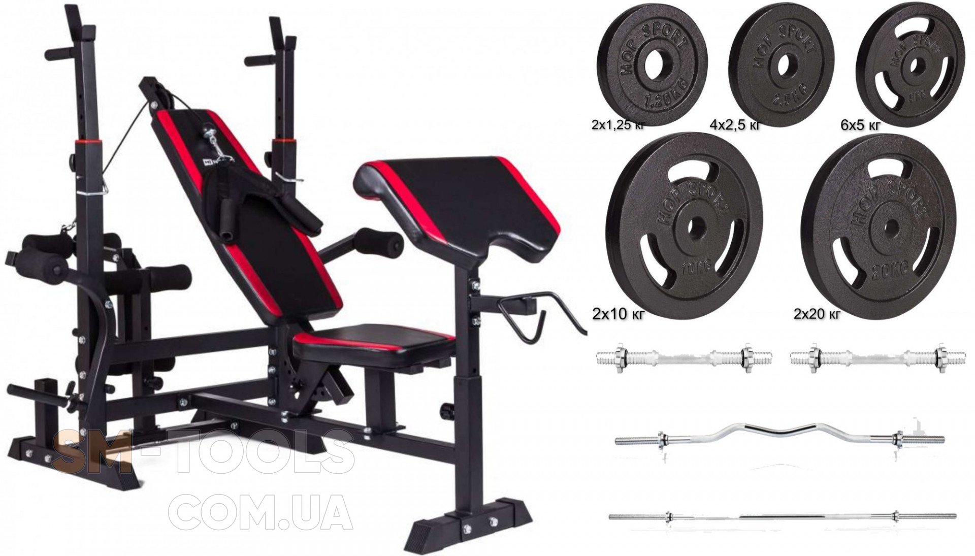 Набір Hop-Sport Strong 129кг з лавкою HS-1075 + пульт (парта)