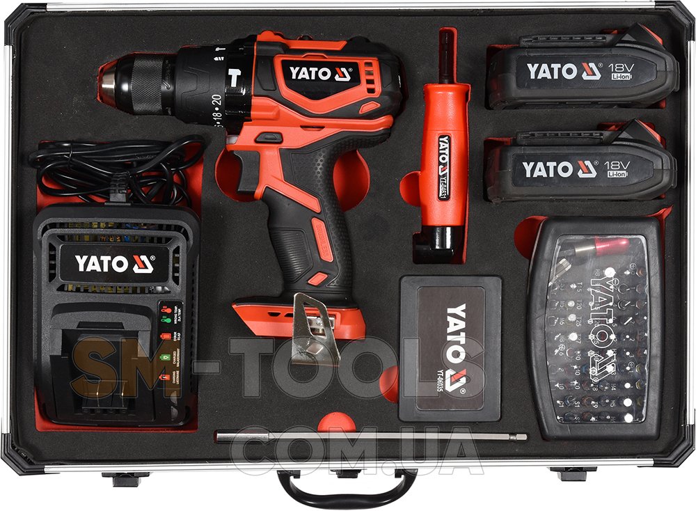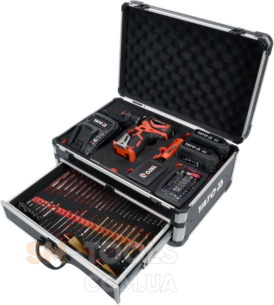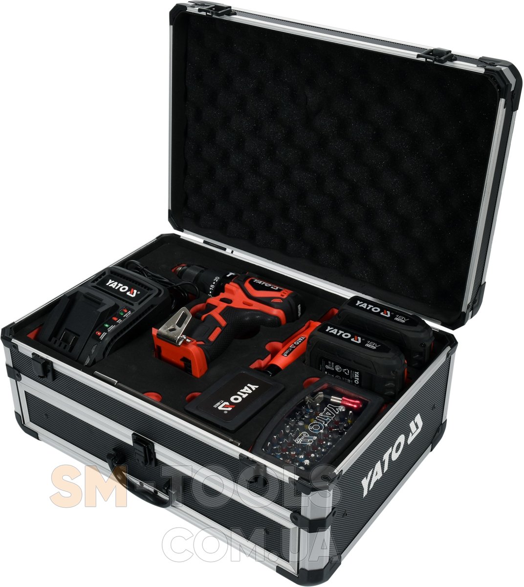 Дриль-шуруповерт ударний акумуляторний YATO YT-44250 + свердла + фрези + викруткові насадки + кейс