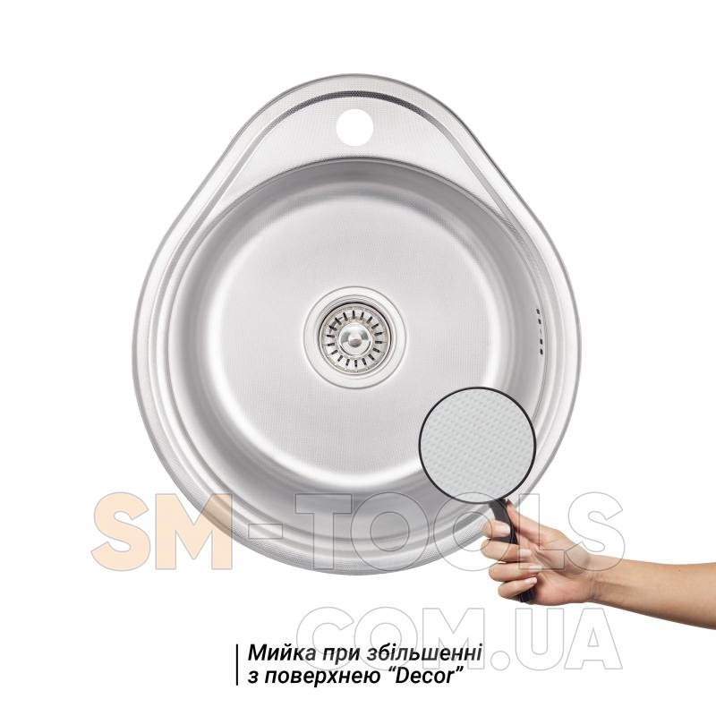 Кухонна мийка Lidz 4843 Decor 0,6 мм виготовлена з високоякісної нержавіючої сталі харчової марки, тому виріб прослужить довгі роки. Так само варто відзначити винятковий дизайн який прикрасить будь-яку кухню. Відмінна якість і дизайн мийки дозволять задовольнити найвибагливіші вимоги і створити затишок у вашому домі! Мийка виконана з робочою круглою чашею, ребристим крилом для сушіння посуду і розморожування продуктів. Монтується врізним способом в отвір в стільниці.