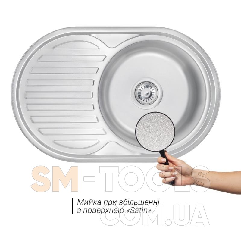 Кухонна мийка Lidz 7750 Satin 0,6 мм виготовлена з високоякісної нержавіючої сталі харчової марки, тому виріб прослужить довгі роки. Так само варто відзначити винятковий дизайн який прикрасить будь-яку кухню. Відмінна якість і дизайн мийки дозволять задовольнити найвищі вимоги і створити затишок у вашому домі! Мийка виконана з робочою круглою чашею, ребристим крилом для сушіння посуду і розморожування продуктів. Монтується врізним способом в отвір в стільниці.