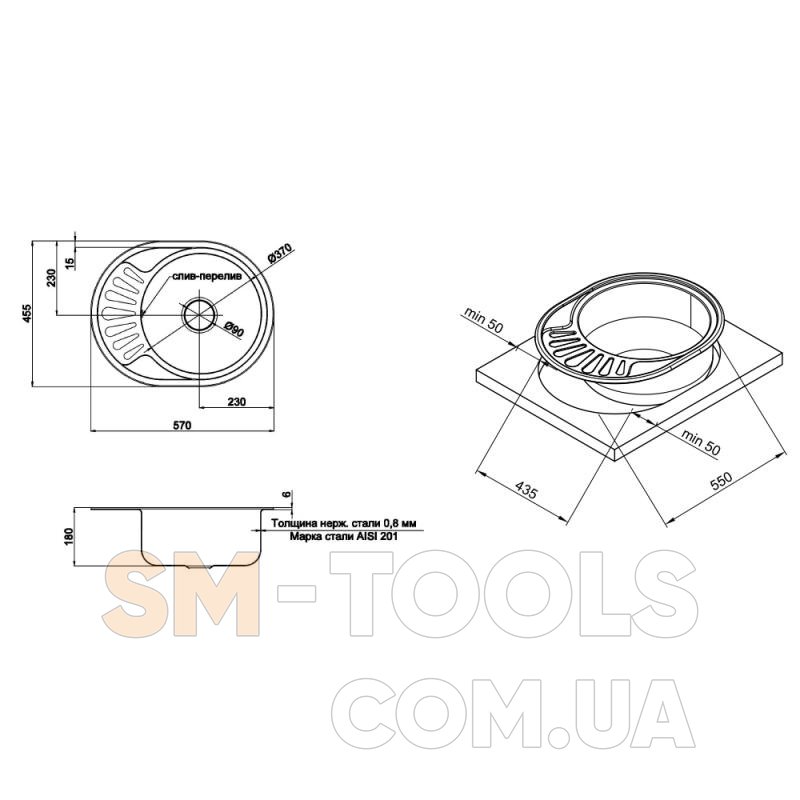Характеристики Кухонна мийка Lidz 5745 Satin 0,8 мм (LIDZ5745SAT08):