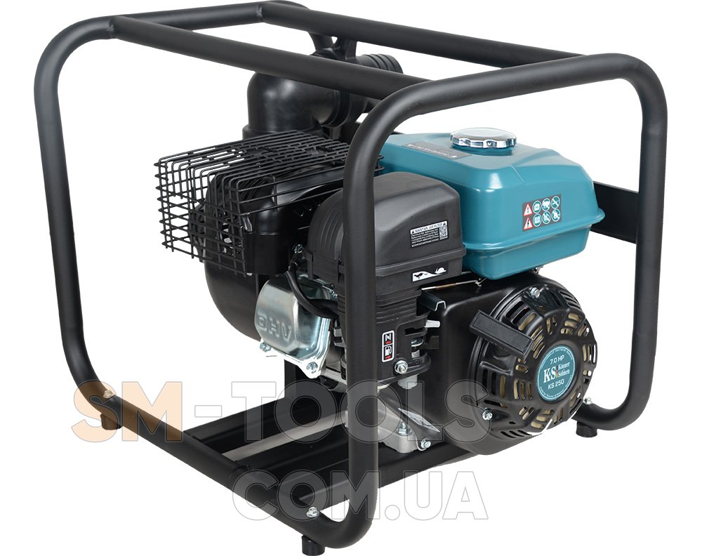 — Посилена сталева рама діаметром 32 мм оберігає мотопомпу від пошкоджень і полегшує транспортування.