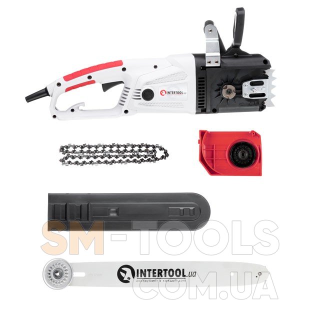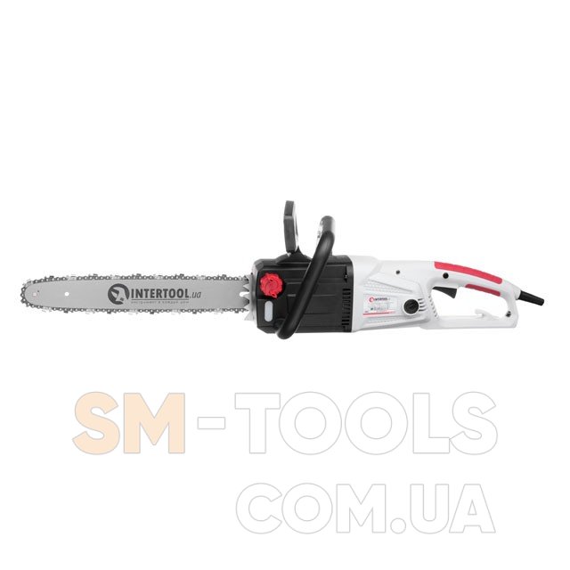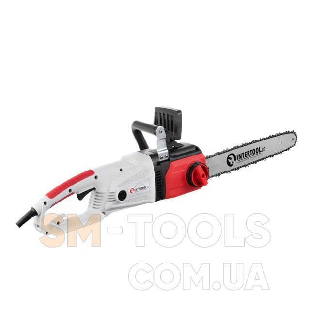 Електропила INTERTOOL з повздовжнім розташуванням двигуна підійде для робіт у садку, на ділянці, також буде корисною на будівництві або під час ремонту.