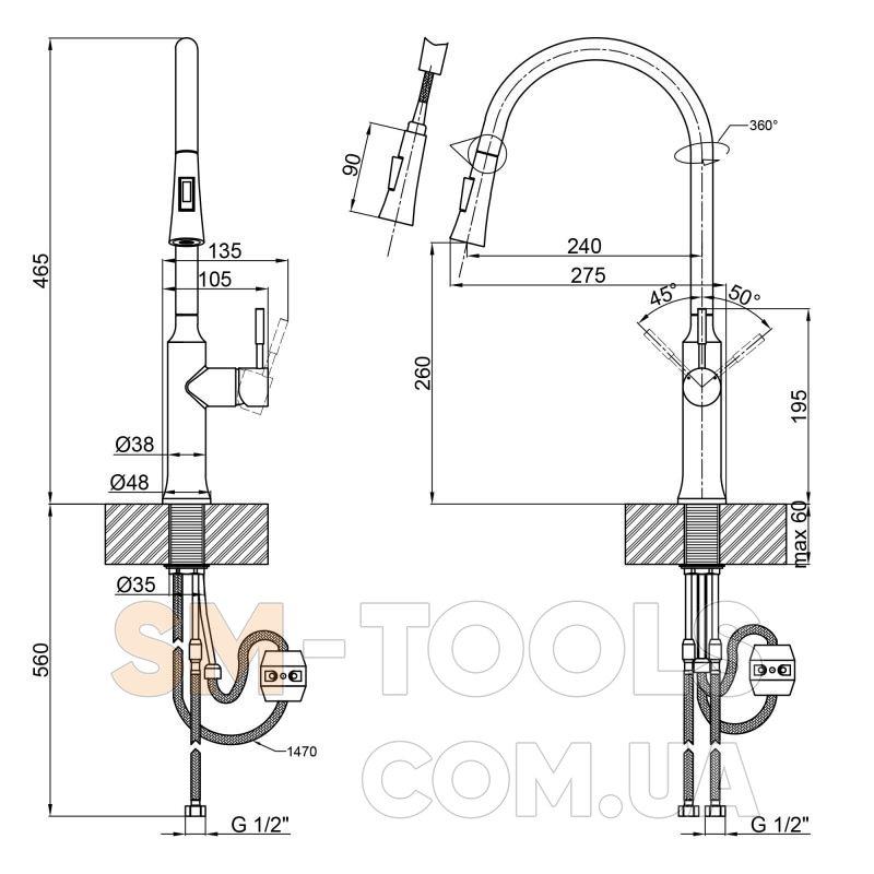 Змішувач для кухні з висувним виливом Qtap Baruska 9137103UN виготовлено з високоякісної латуні з брашованим нікельованим покриттям, що забезпечує довговічну безперебійну роботу виробу. Завдяки висувній формі виливу і двом режимам подачі струменя, які перемикаються кнопкою на виливі, можна з легкістю очистити важкодоступні місця на посуді. Довжина висувного шланга 1470 мм. Управління температурою і напором води здійснюється за допомогою зручного важеля.