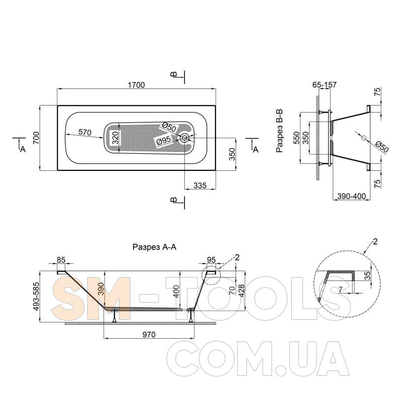 Габарити готового виробу 493-585х1700х700