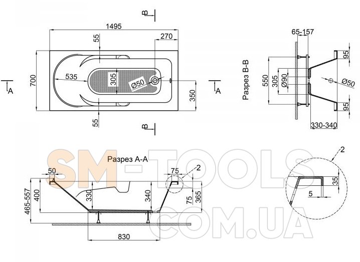 Опис Ванна акрилова Lidz Zycie 150 150x70 з ніжками Nozki R: