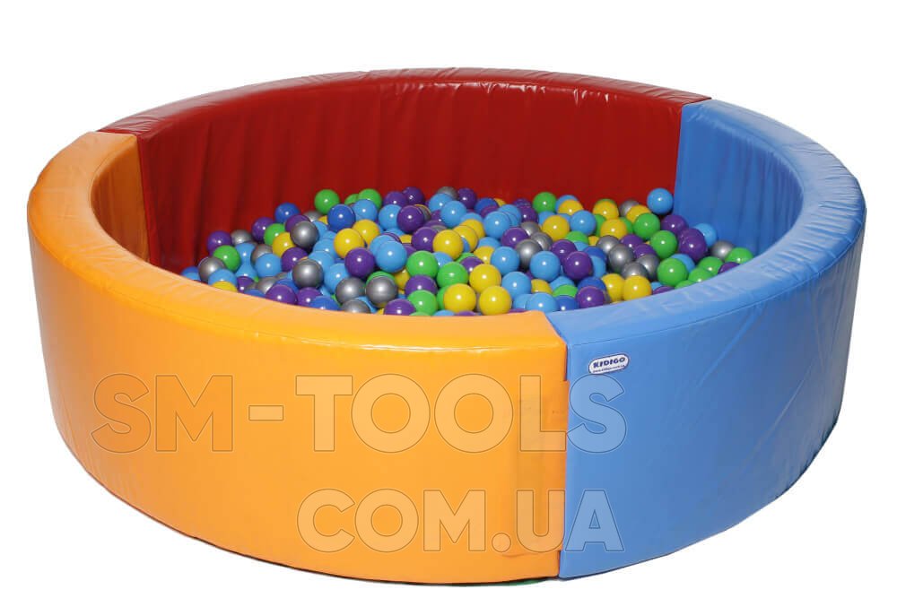 Висота борту Сухого басейну ТМ KIDIGO Коло може бути від 40см і до 50см, а в діаметрі Сухий басейн ТМ KIDIGО Коло може бути від 0,9 м і до 2.5м.