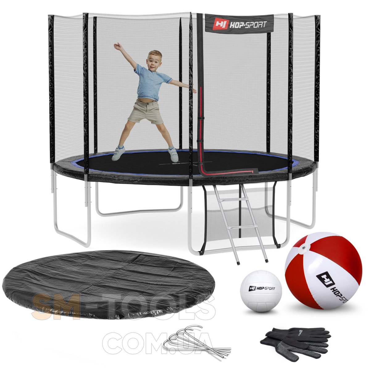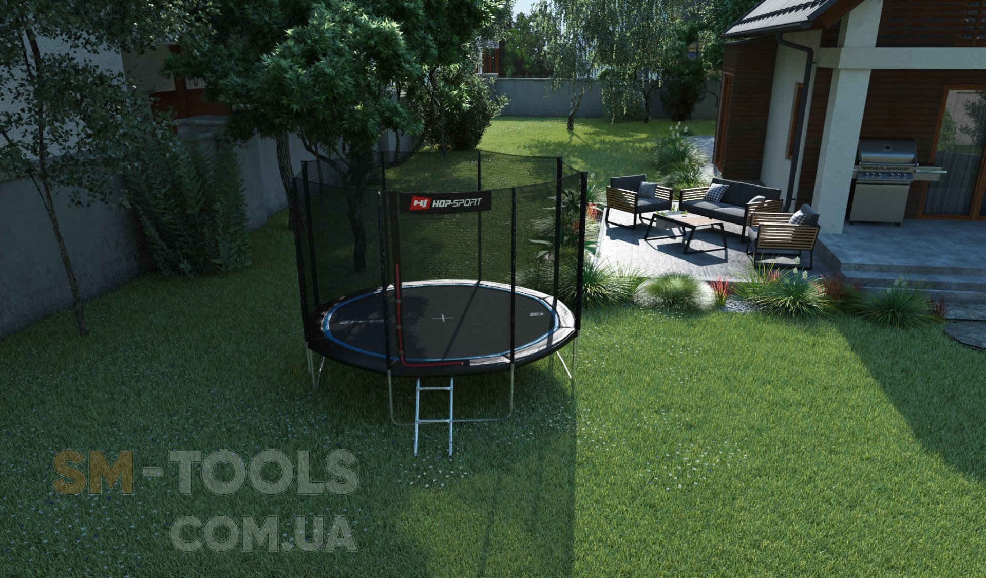 Батут Hop-Sport 10ft (305cm) black/blue з зовнішньою сіткою 4 ноги