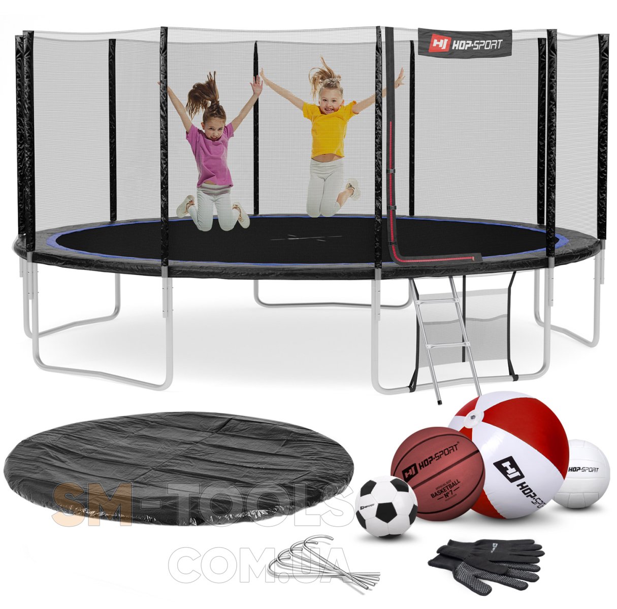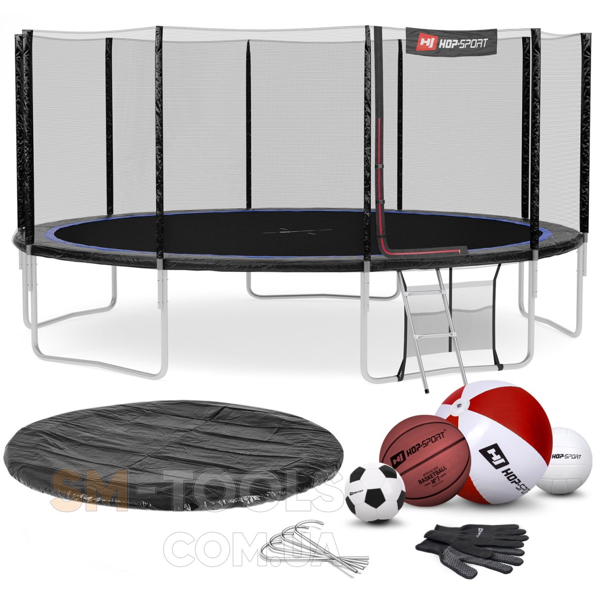 Батут Hop-Sport 16ft (488cm) black/blue з зовнішньою сіткою