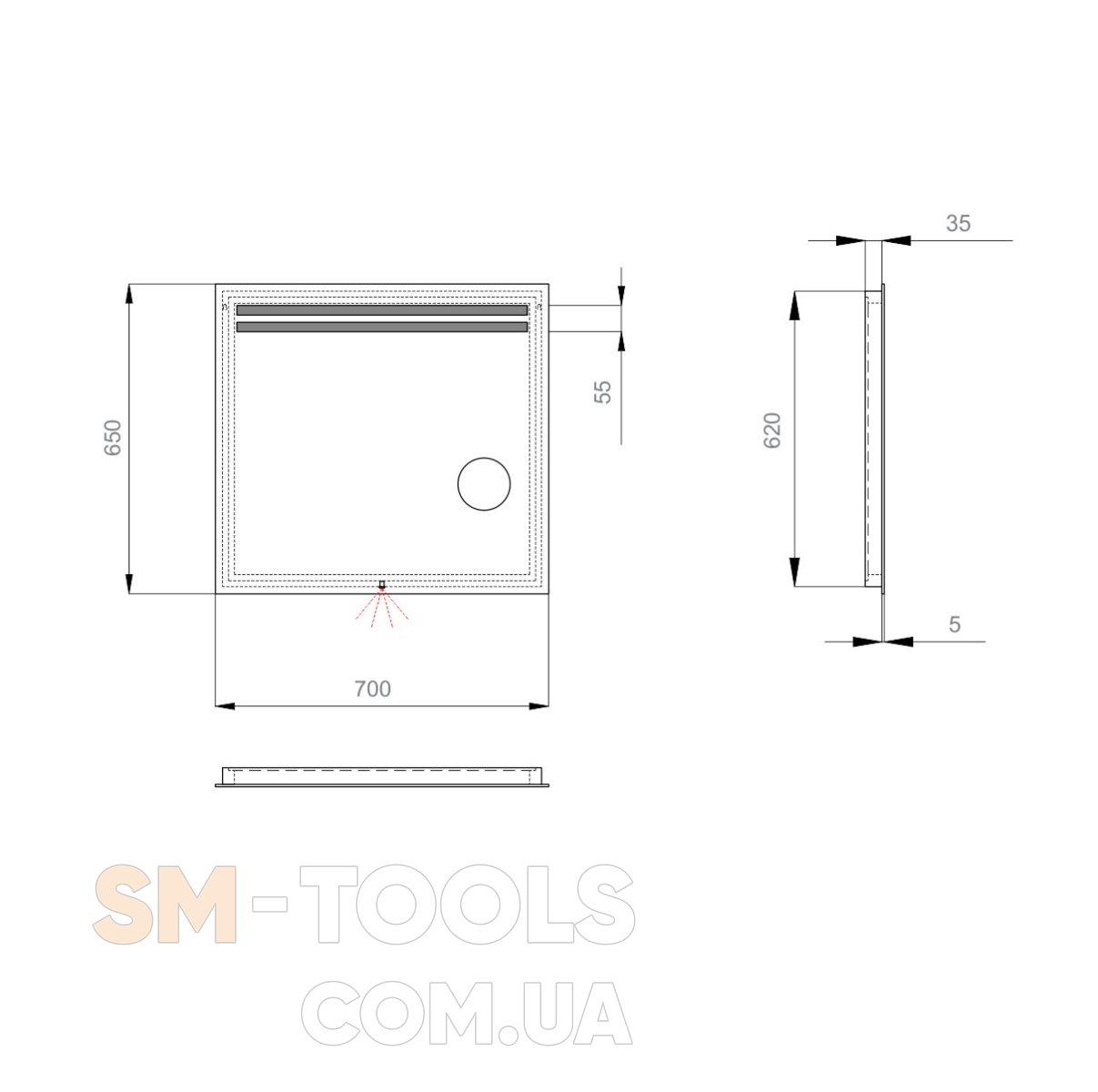 Дзеркало SANWERK Lava Della 70x65 LED 2835IR W-0-S