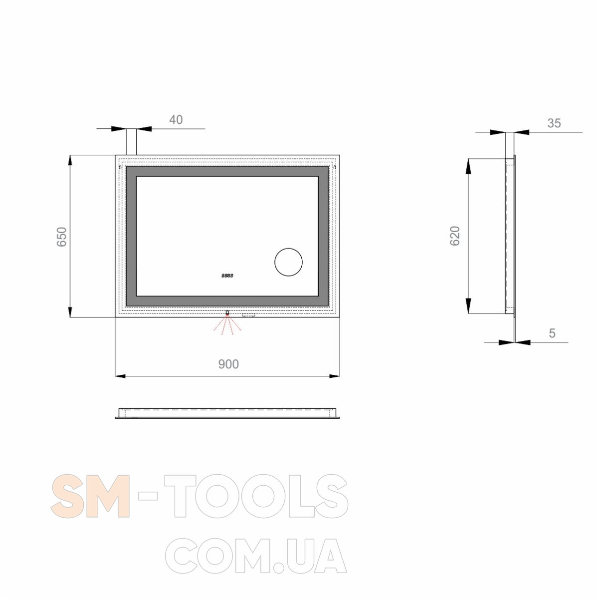 Дзеркало SANWERK Ultra Mega 90x65 LED 2835IR W-W-S