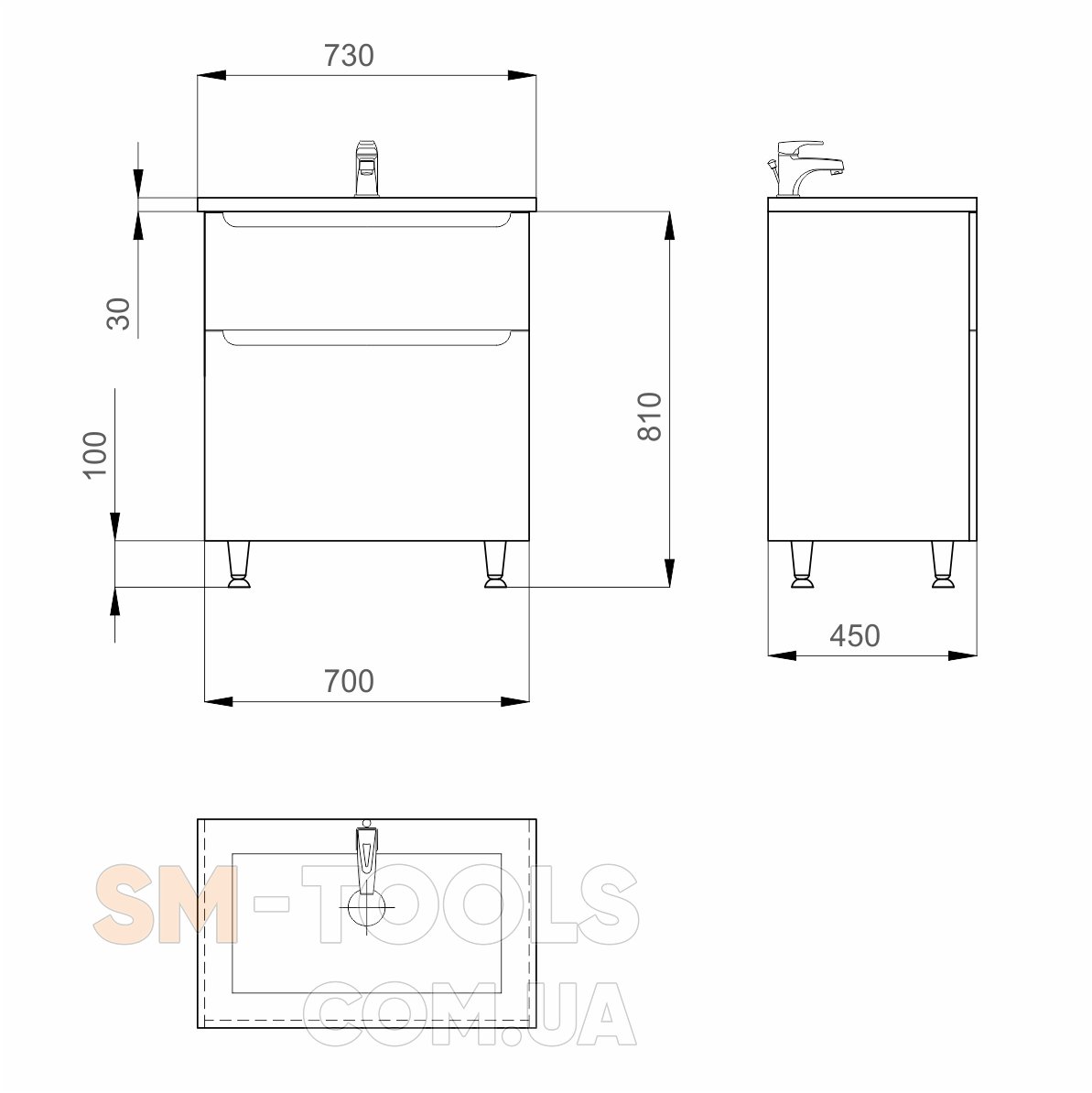 Тумба з умивальником SANWERK Era 70 Білий Канте 2F