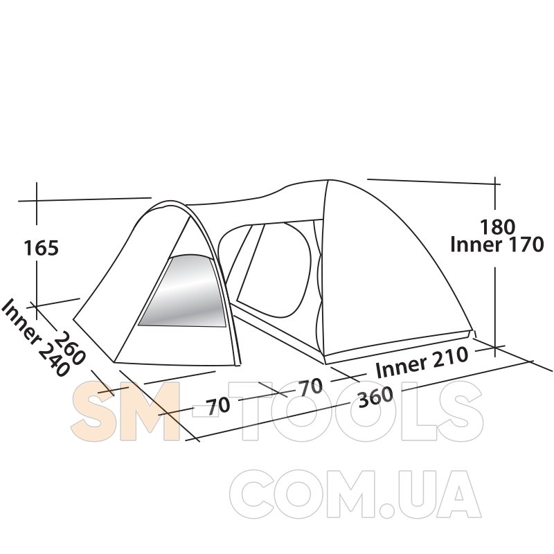 - Затемненные стены и потолок внутренней палатки уменьшают проникновение света, что способствует хорошему сну.