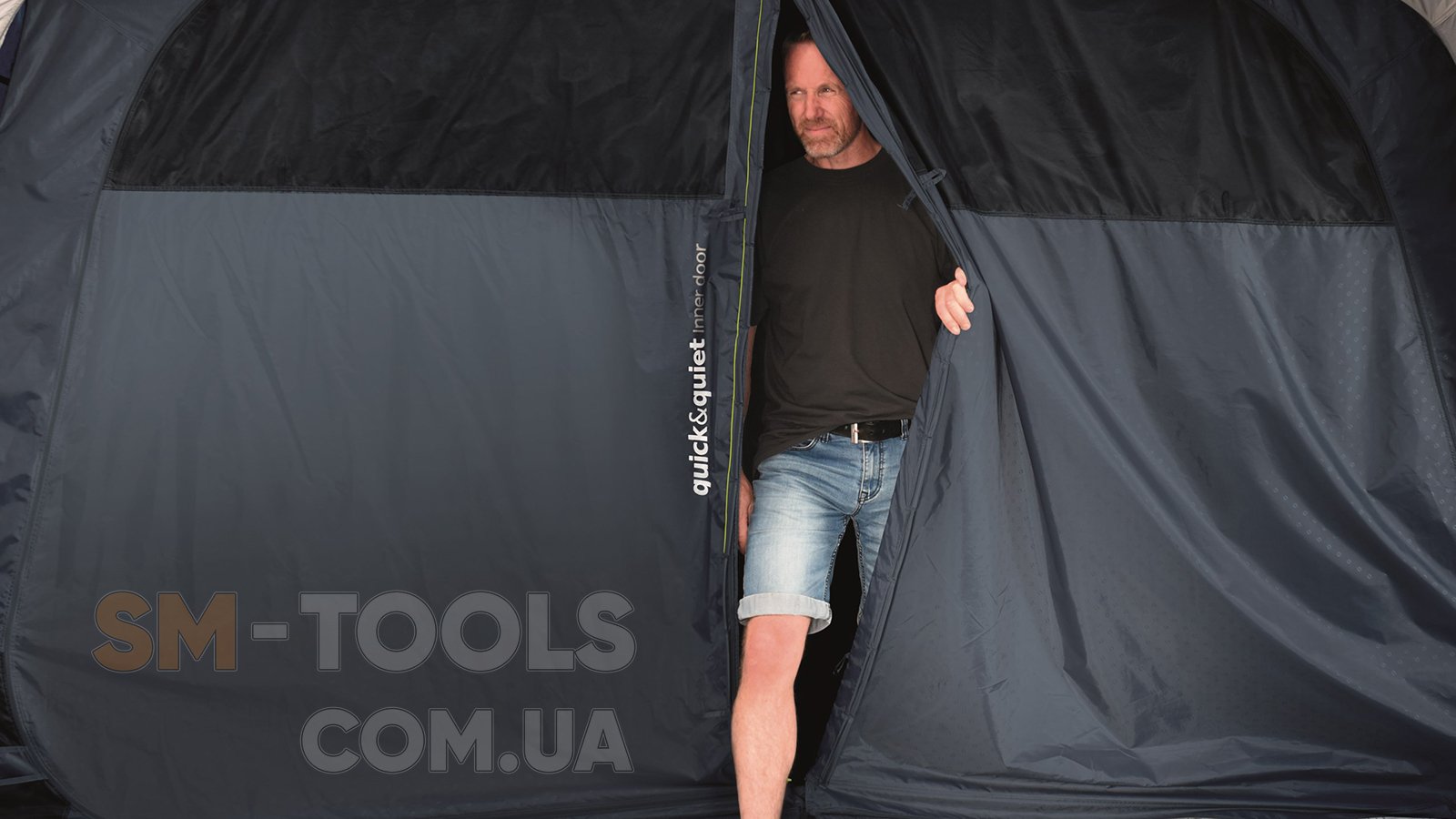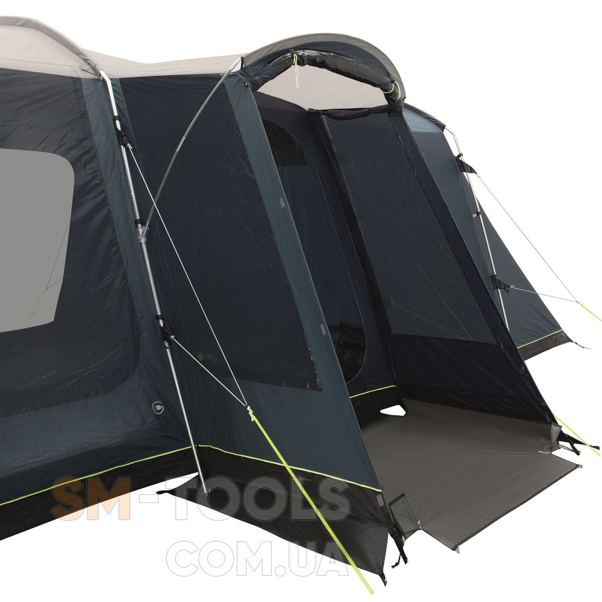 - Outwell Easy Access System with mesh - главная дверь с москитной сеткой скручивается в одну сторону, а пол палатки находится заподлицо с землей для безопасного и легкого доступа.