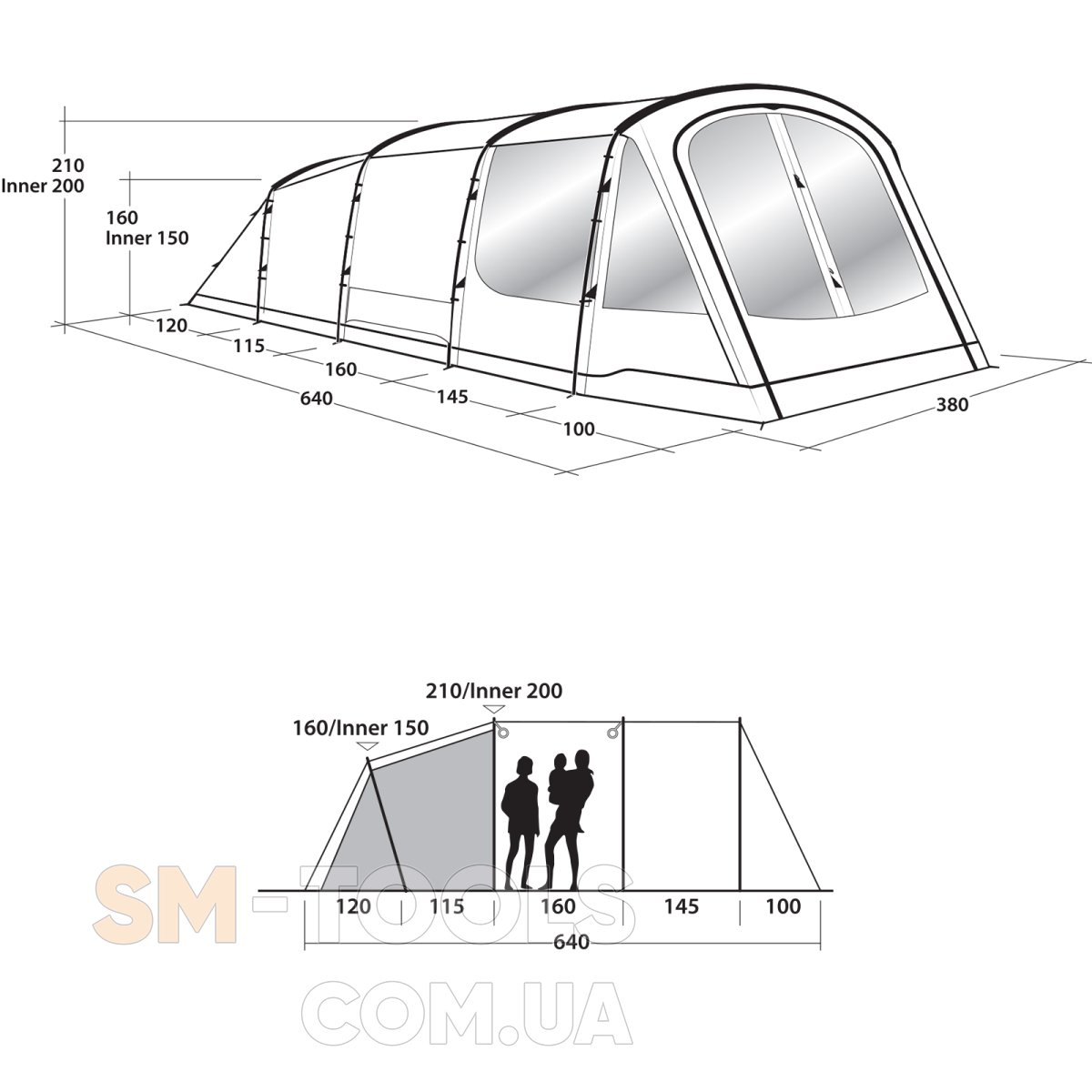 Внутренняя палатка (Д х Ш х В): 215 х 360 х 200 см