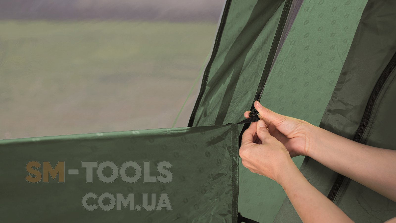 - Outwell Rear Ventilation System - специальная конструкция заднего вентиляционного окна с возможностью индивидуальной регулировки для улучшенного притока свежего воздуха.
