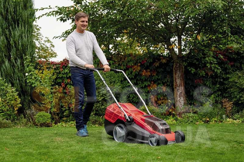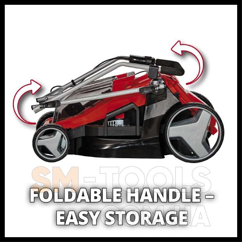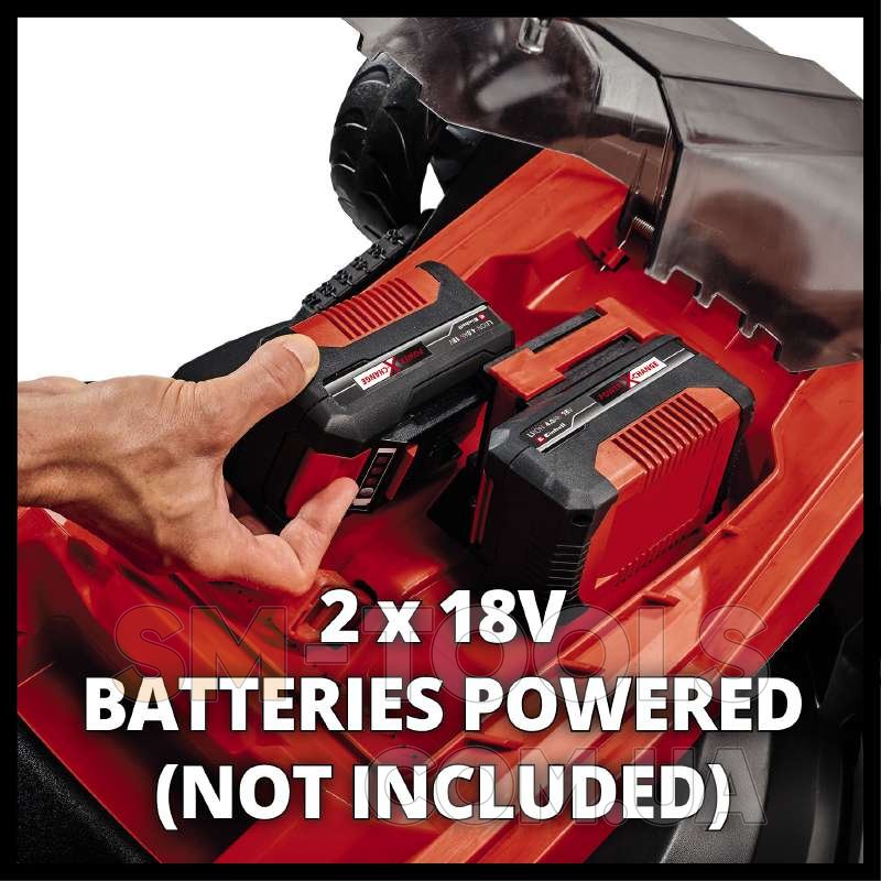 Нова акумуляторна газонокосарка лінійки Power X-Change system Einhell GE-CM 36/43 Li M - Solo серії Expert plus - високоякісний, надійний і дуже потужний інструмент, який дозволяє на одному заряді акумуляторів піклуватися про газони площею до 900 м² (при використанні акумуляторів Li-Ion 18B 6,0Аh PXC). Газонокосарка працює від двох 18-вольтних акумуляторних батарей. Для зручності регулювання висоти стрижки є центральне 6-ти рівневе регулювання вибору висоти зрізу трави. Акумуляторна газонокосарка Einhell GE-CM 36/43 Li M - Solo оснащена складаною, довгою ручкою, яка регулюється по висоті в трьох положеннях, вона може бути відрегульована ідеально для користувачів будь-якого зросту і дозволяє зберігати в складеному вигляді газонокосарку в мінімальному просторі. Великі колеса газонокосарки надають менше навантаження на газон. Газонокосарка поставляється з мульчуючою заглушкою. Травозбірник на 63 л оснащений індикатором рівня, так що ви можете відразу побачити, коли прийшов час його очистити. Для зручності транспортування існує вбудована ручка. Газонокосарка поставляється без акумуляторів і зарядного пристрою, але вона може бути приведена в дію за допомогою Power X-Change акумулятора.