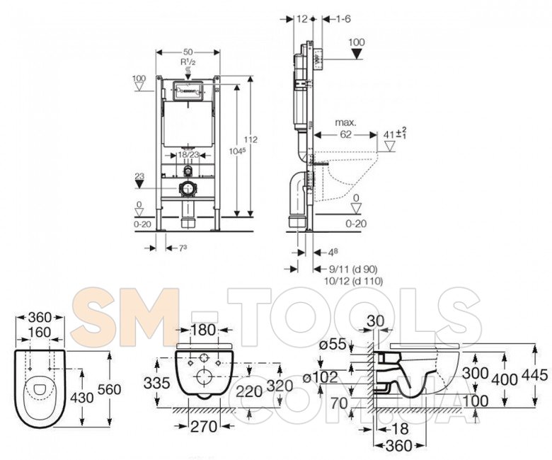 Характеристики Унітаз + Інсталяція Roca Meridian Rimless A34H240000+458.126.00.1: