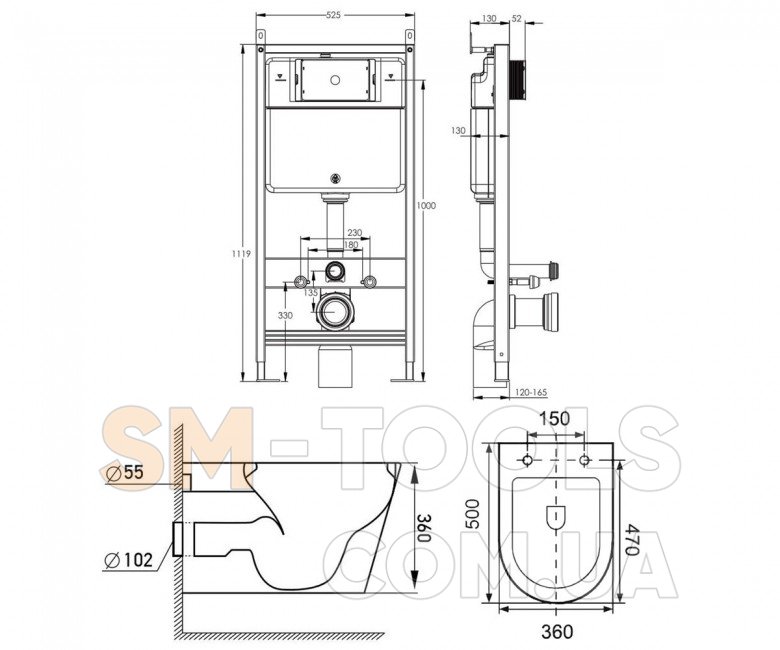 Унітаз + Інсталяція VOLLE Fiesta Rimless 13-77-034+212010