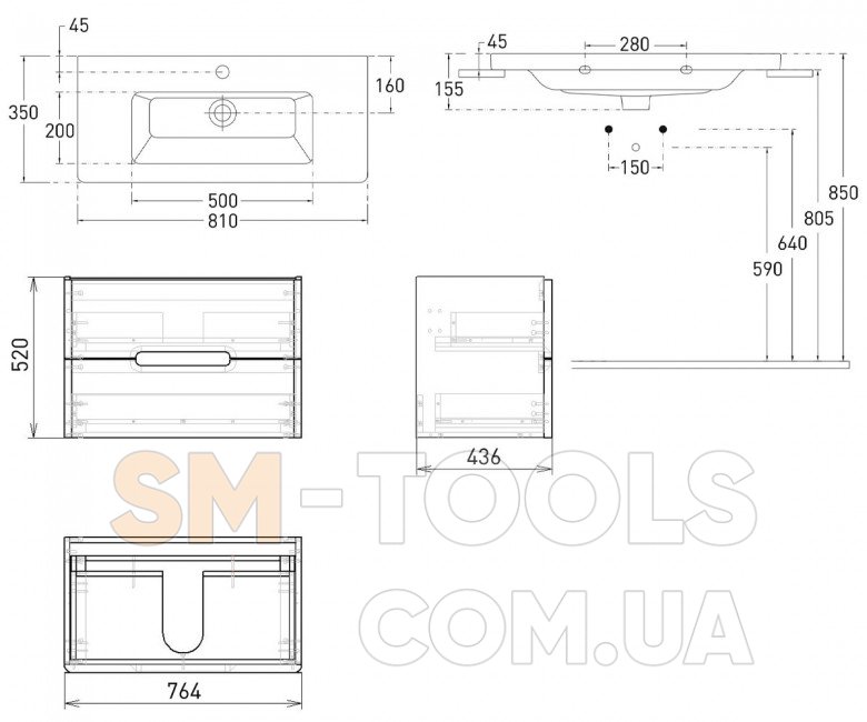 Комплектація Тумба з умивальником VOLLE Solo 1910.308009: