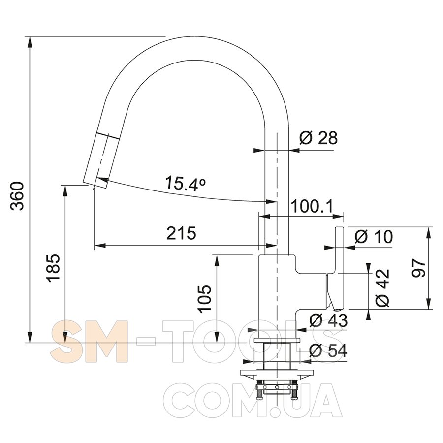 Врізний змішувач Franke Lina з витяжним виливом, важелем збоку і багаторівневим аератором.