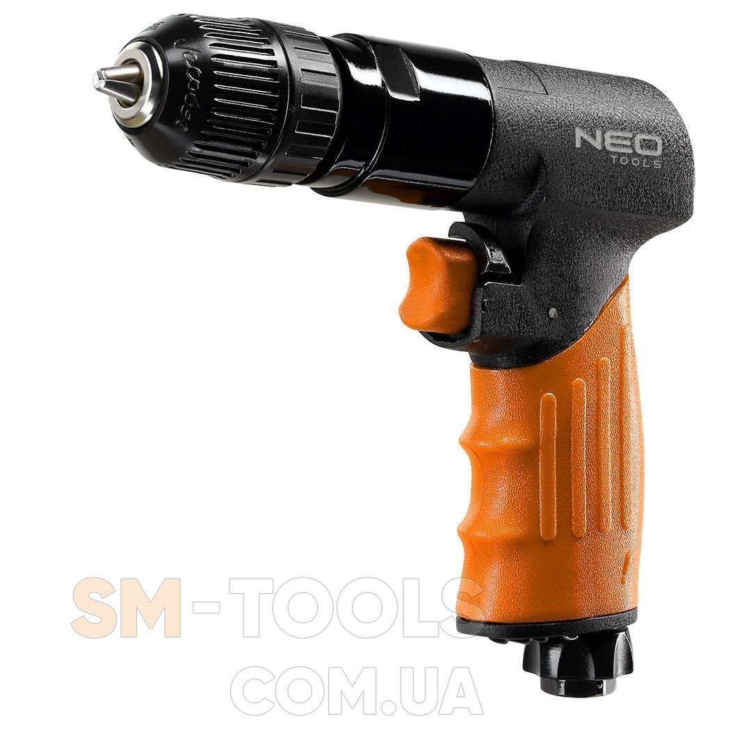 Пневматична дриль NEO (арт. 14-026). Пневматична дриль NEO відрізняється високою якістю виконання. Ідеально підходить для роботи в автомайстерні. Максимальний діаметр свердла 10 мм. Має перемикач напрямку обертання право/ліво, максимальна частота 1800 об./хв, робочий тиск 6.3 – 7.0 бар. Відповідність європейським стандартам в галузі безпеки підтверджує сертифікат CE. Бренд NEO виправдовує очікування професіоналів.