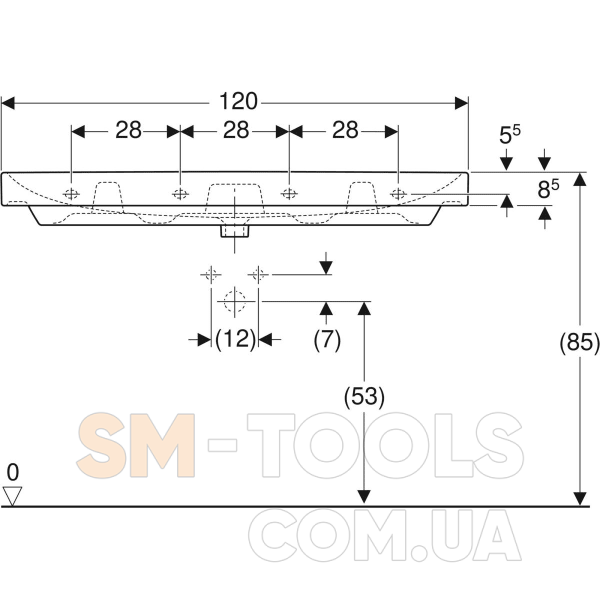 Умивальник Geberit Smyle Square: B=120см, T=48см