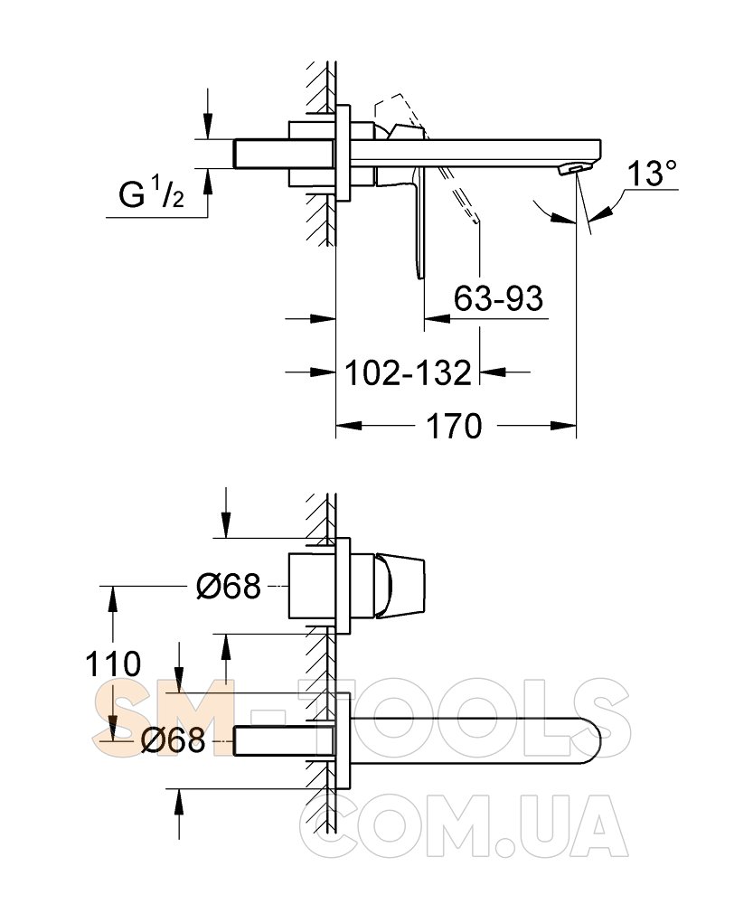Змішувач Eurosmart Cosmopolitan настінного монтажу на два отвори, має приховану монтажну частину (23571000) що купуэться окремо. Змішувач регулюється чітко і плавно завдяки технології GROHE SilkMove®. Він ідеально підійде для сучасних ванних кімнат, має прекрасний вигляд і не менше прекрасну ціну.